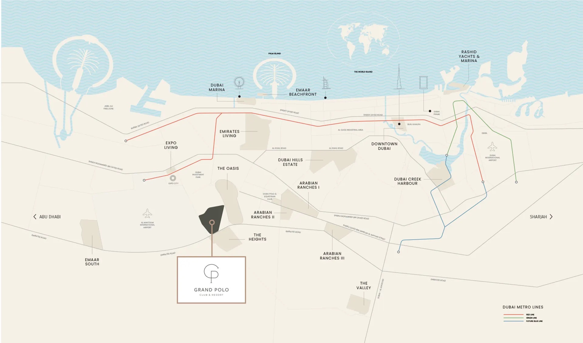 - The Clubhouse: Set in the Green Core, the Clubhouse stands as a bold architectural landmark, reflecting the power of polo.